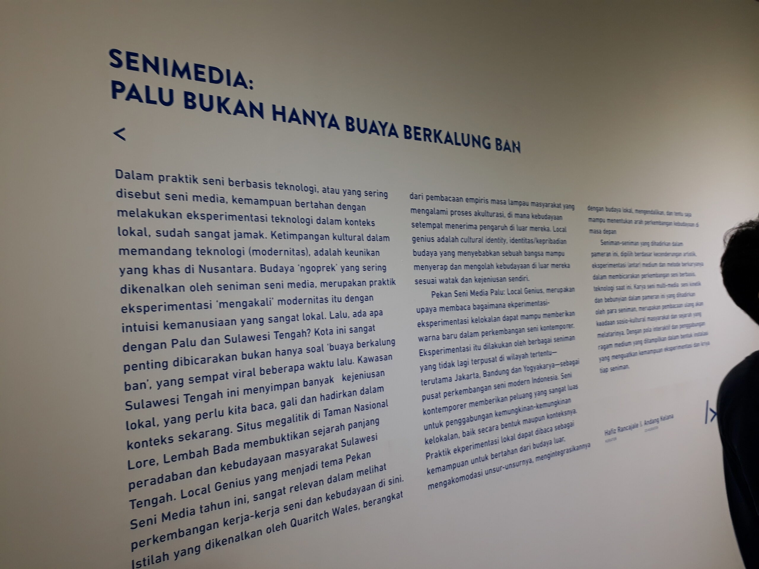 Situs megalitik di Taman Nasional Lore, Lembah Bada membuktikan sejarah panjang peradaban dan kebudayaan masyarakat Sulawesi Tengah. Local Genius yang menjadi tema Pekan Seni Media tahun ini, sangat relevan dalam melihat perkembangan kerja-kerja seni dan kebudayaan di sini. Istilah yang dikenalkan oleh Quaritch Wales, berangkat dari pembacaan empiris masa lampau masyarakat yang mengalami proses akulturasi, di mana kebudayaan setempat menerima pengaruh di luar mereka. Local genius adalah cultural identity, identitas/kepribadian budaya yang menyebabkan sebuah bangsa mampu menyerap dan mengolah kebudayaan di luar mereka sesuai watak dan kejeniusan sendiri.