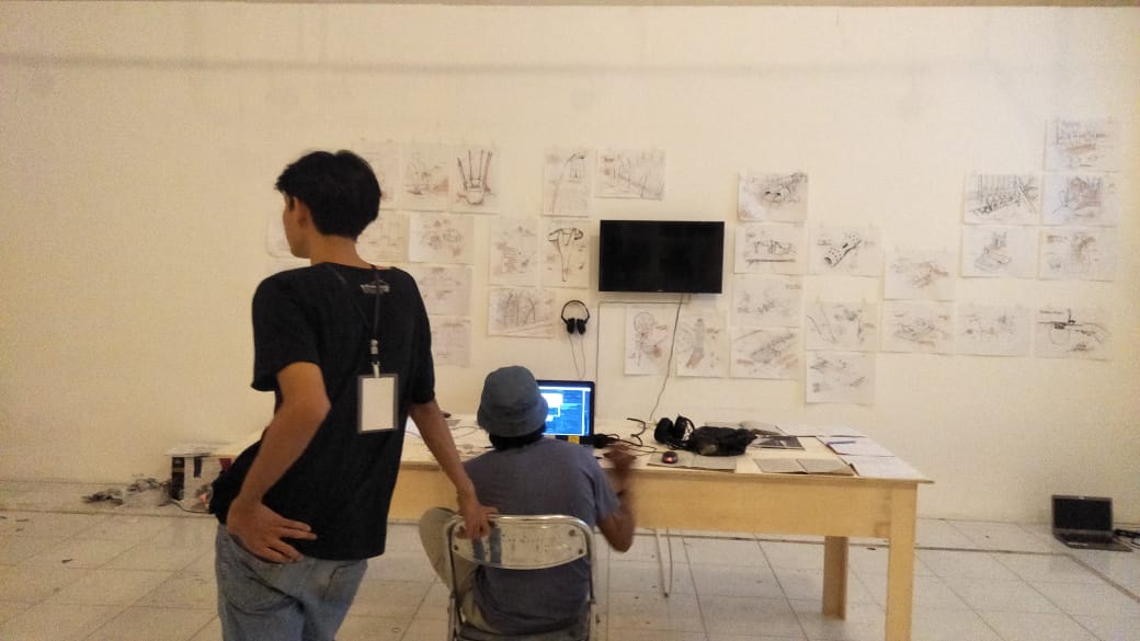 Kembali pada Gubuak Kopi. Dalam pameran ini dihadirkan karya berupa instalasi ruang kerja yang menyajikan proses-proses dan upaya menemukan medium-medium yang lebih relevan untuk membicarakan persoalan lokal, diantaranya terdapat citraan bunyi dan visual.