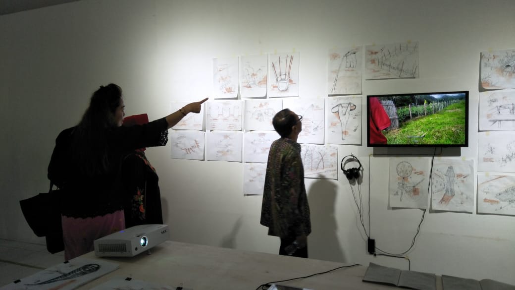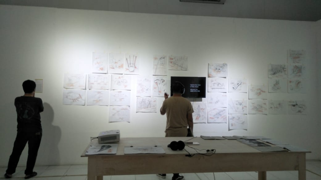 Pemanfaatan medium sketsa ini sangat signifikan untuk melihat praktek pemanfaatan medium-medium berkesenian sebagai metode dalam membicarakan persoalan-persoalan lokal. Sketsa-sketsa ini disajikan secara sederhana yang ditata didinding bersama dengan satu buah televisi yang memutarkan salah satu koleksi Vlog Kampuang Gubuak Kopi, yakni sebuah video yang dibuat oleh warga pengguna telepon pintar dalam menggali narasi-narasi lokal, video yang dipamerkan tersebut menyajikan obrolan bersama salah seorang petani di Padang Sibusuk yang menggarap lahan disekitaran lahan-lahan yang telah mati oleh pertambangan emas.