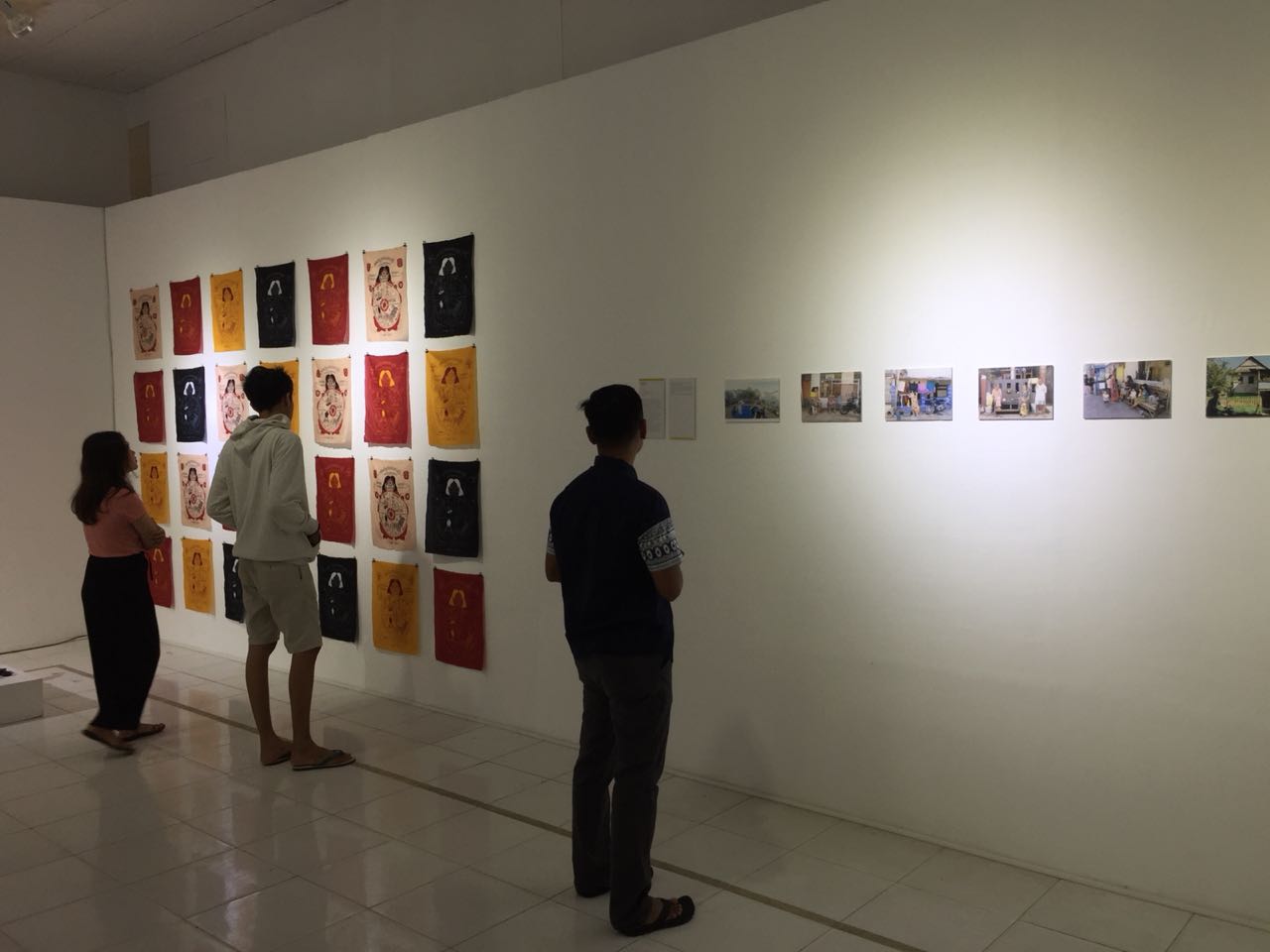 Di meja pamer itu juga terdapat sebuah telepon pintar yang terhubung pada sebuah earphone dan memutarkan komposisi bunyi aktvitas manggaro (petani mengusir burung) yang sangat musikal.