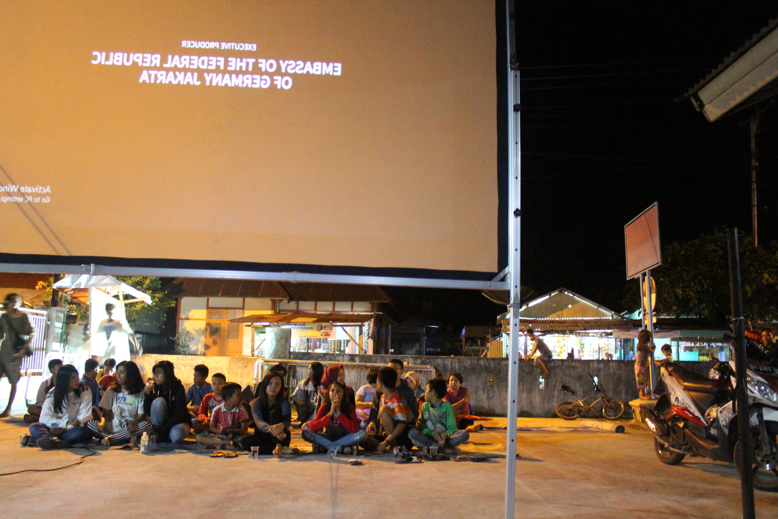 Sore itu, setelah menonton Darah dan Doa dan berdiskusi, penayangan dilanjutkan pada malam hari di Lapangan Pacuan Kuda, atau lapangan pemuda RW VI, di Kelurahan Kampung Jawa, Kota Solok. Penayangan ini diharapkan dapat menarik atensi publik di perkampungan atau di tingkat kelurahan terhadap kebudayaan Sinema.
