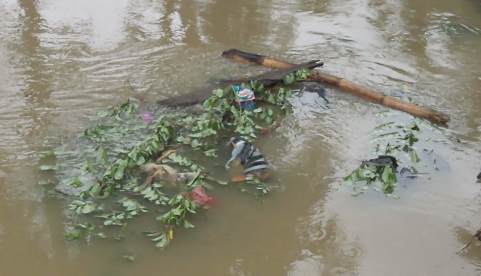 Banjir yang sudah memuncak sejak pagi, hingga siang mulai surut, lalu sore. Ikan-ikan banyak terperangkap di tempat-tempat air surut, yang bukan aliran sungai.