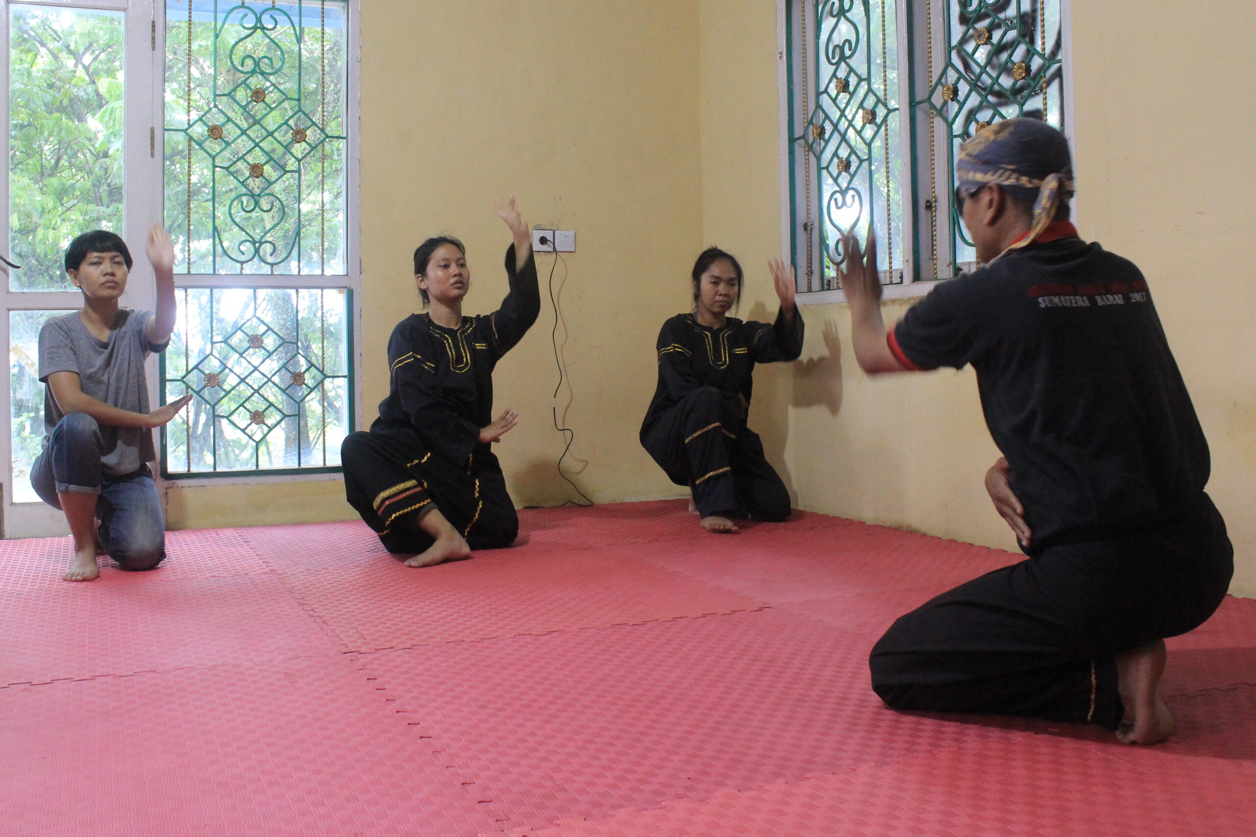 Ternyata Da Zal, pelatih silek di Limbago Budi telah menunggu kami di sasaran. Sebelum memulai berlatih silek, saya dan partisipan pun ikut membersihkan sasaran, menyapu ruangan, dan memasang matras sebelum berlatih.