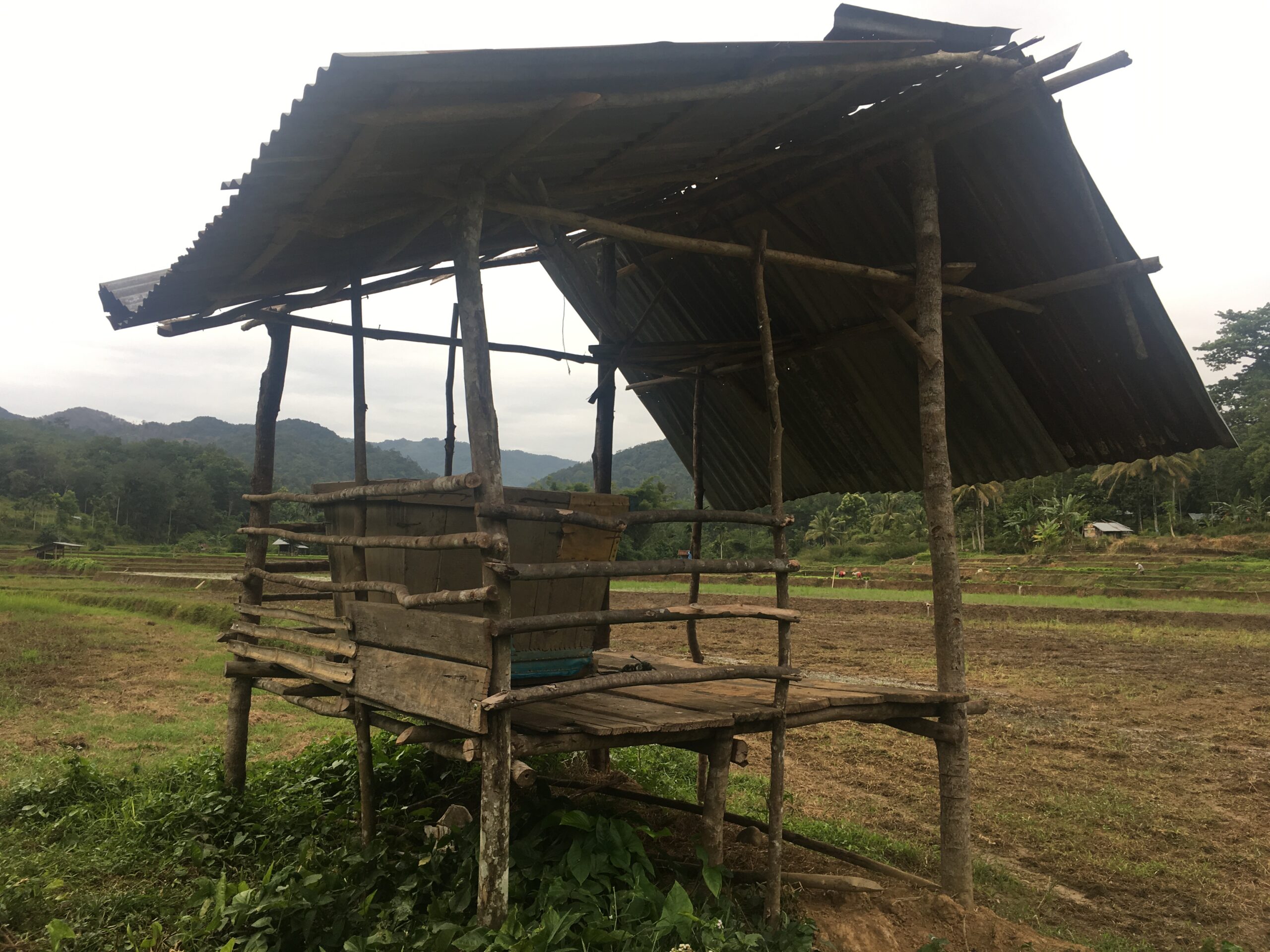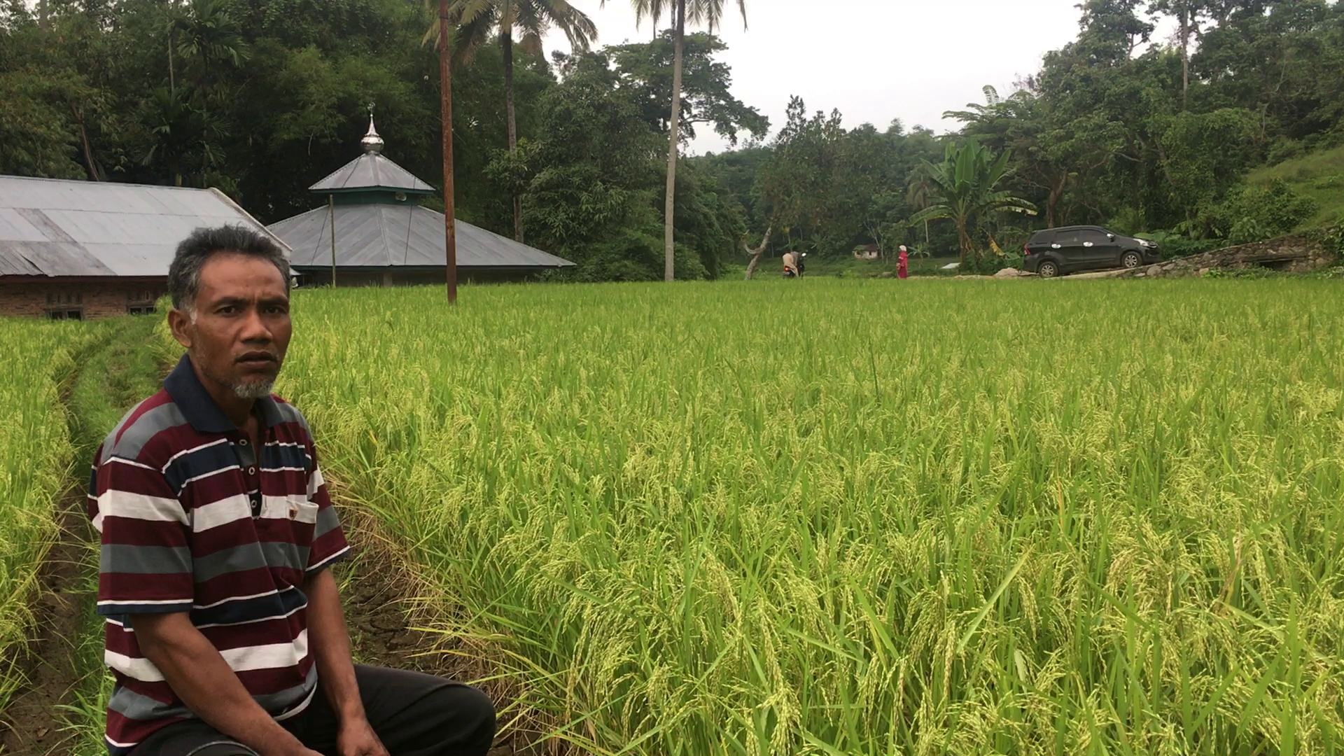 Kamipun lantas diajak Fadlan turun ke areal sawah di lembah-lembah yang tak terlalu curam itu, berjalan bergantian di pematang sawah mengitari petak-petaknya yang sempit, dan menyusuri pinggiran anak sungai yang oleh program pemerintah sudah dibeton dan menjelma menjadi irigasi. Sepanjang perjalanan kami bertemu dan menyapa petani-petani yang kebetulan sedang menjalankan aktivitas mereka di sawah-sawah milik mereka. Ada yang baru akan mulai menanam, tampak sedang memilah-milah bibit padi menjadi beberapa onggokan dan diletakkan berkelompok-kelompok di tengah sawah. Di sisi lain, tampak beberapa petani justru tengah menanami bibit-bibit hasil semaian tersebut. Selain itu, ada juga petani yang justru tengah “mauni” sawah-sawah mereka. Yaitu sebuah tradisi menunggui dan menjaga sawah-sawah yang padinya sudah mulai memunculkan bulir-bulir, atau dalam istilah pertanian setempat biasa disebut “padi tabik”, supaya tidak dimakan oleh burung-burung pipit pemakan padi. Istilah “mauni” sawah ini juga biasa disebut dengan “manggaro”, atau mengusir burung-burung.