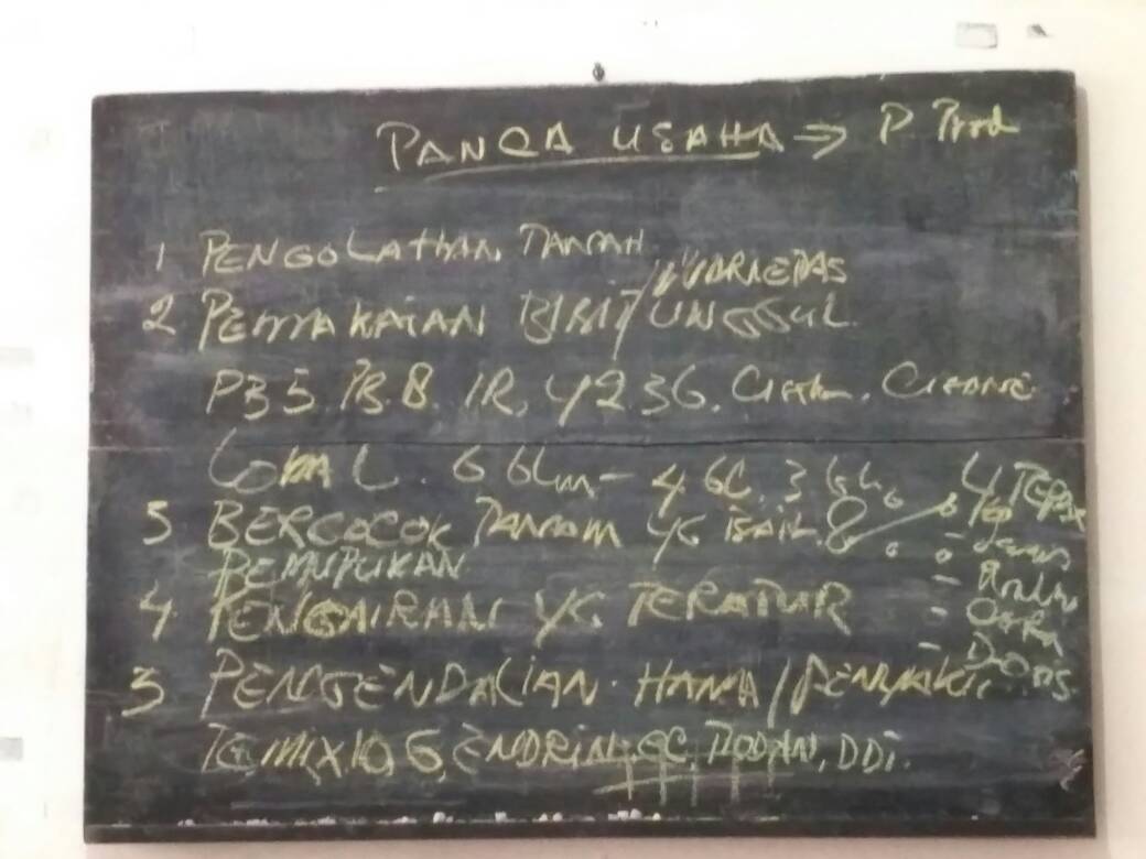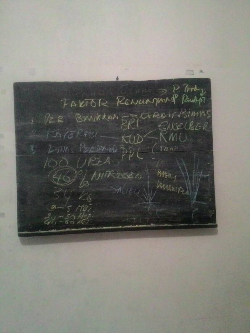 Kuliah sore itu diawali dengan penjabaran situasi pertanian pada zaman Orde Lama dan masa transisi ke Orde Baru. Waktu itu padi diproduksi hanya satu sekali setahun, irigrasi pun yang belum maksimal, begitu juga dengan alat bajak atau peralatan lainnya yang belum memadai. Indonesia saat itu masih membeli beras ke Thailand untuk mencukupi kebutuhan pangan masyarakat se Indonesia. Bahkan, waktu itu beberapa masyarakat kita yang makan nasi dicampur dengan jagung. Sekitar tahun 1970-an barulah masuk berbagai teknologi yang memadai untuk menunjang sektor pertanian. Pada masa ini, program-program pemerintah berfokus pada peningkatan produksi, sebelum berfokus pada peningkatan keuntungan. Kalau, biasanya padi dipanen satu kali setahun, saat itu secara perlahan ditingkatkan menjadi dua hingga tiga kali setahun. Mesin bajak yang memadai dan sistem irigrasi yang baik, kemudian mendorong peningkatan produksi masyarakat, hingga mencapai swasembada.