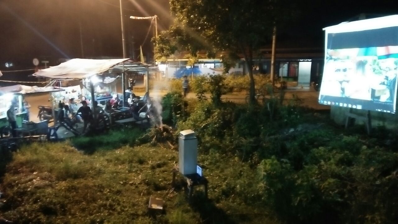 Sebelum pemutaran kami mempersiapkan tempat buat pemutaran, mulai dari membersihkan semak-semak yang ada di sekitar tempat pemutaran. Memang tempat penayangan kali ini terbilang tidak biasa. Karena biasanya selain di markas Gubuak Kopi, kita melaksanakannya di lapangan atau di taman kota. Tapi kali ini, sengaja kita memilih Simpang Kamboja. Selain tempat ini cukup ramai dengan pedagang, kita juga ingin mengajak warga bersama-sama monyoroti soal kebersihan tempat ini. Siang menjelang sore itu, Saya, Riski, dan Zaekal mempersiapkan layar di kantor Gubuak Kopi untuk dibawa ke Lokasi pemutaran untuk di pasang di tempatnya. Para partisipan dan warga di sekitar, juga ikut membantu untuk mempersiapkan tempat pemutaran kali ini. warga-warga yang berjualan di sekitar tempat pemutaran, juga ikut membantu. Bantuannya macam-macam, mulai dari meminjamkan alat, tenaga, dan juga dengan sidikit makanan dan minuman.