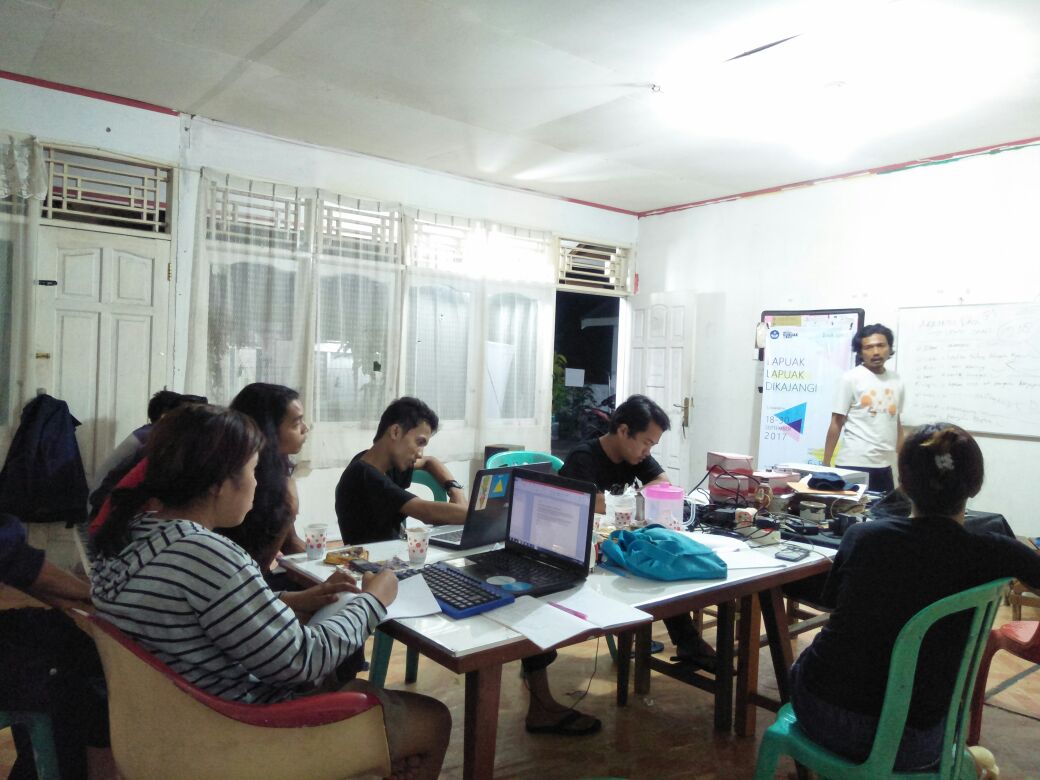 Sabtu, 23 September 2017, adalah hari kelima lokakarya Lapuak-lapuak Dikajangi. Pada hari ini para partisipan kembali melanjutkan riset mereka ke lapangan. Kiki seorang Partisipan melanjutkan risetnya di sekitaran Kota Solok, untuk mencari Audio, Video dan juga Foto-foto yang berkaitan dengan ‘kultur dapur’ begitu juga Joe Datuak mengumpulkan bahan terkait silat dan yang lainnya. Sorenya, kami melanjutkan mempersiapkan program penayangan film: Sinema Pojok. Penayangan kali ini dilakukan di Simpang Kamboja, Kampuang Jawa Kota Solok. Lokasinya cukup dekat dari markas Komunitas Gubuak Kopi.