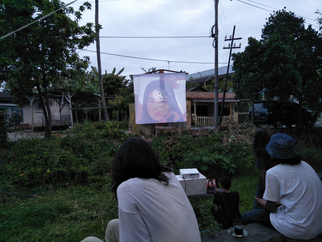 Tepat pukul 20.00 Wib, kita memutarkan film Asrama Dara. Selain warga yang serius menonton, malam itu juga diramaikan oleh warga yang sekedar ingin nongkrong, ataupun belanja di warung-warung di Simpang Kamboja.