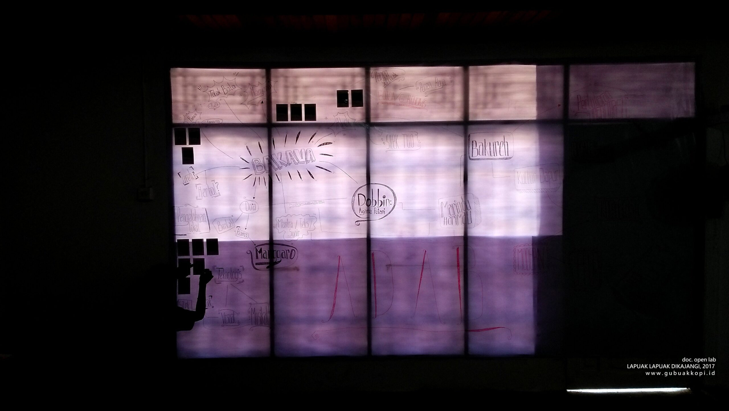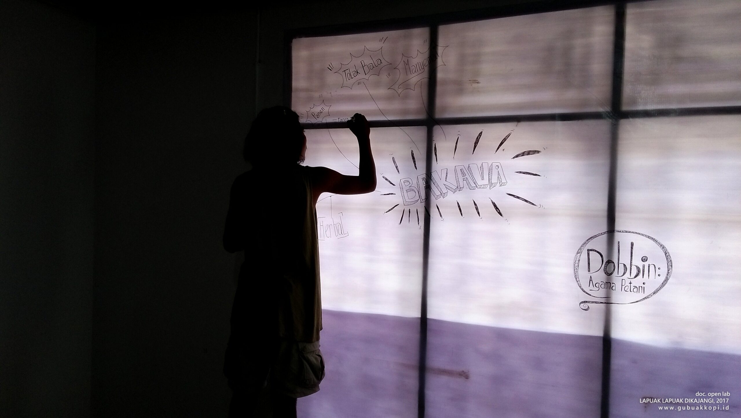 Aksi malamang di hari terakhir open lab: LAPUAK LAPUAK DIKAJANGI, 6-8 Oktober 2017, di Galeri Gubuak Kopi.
