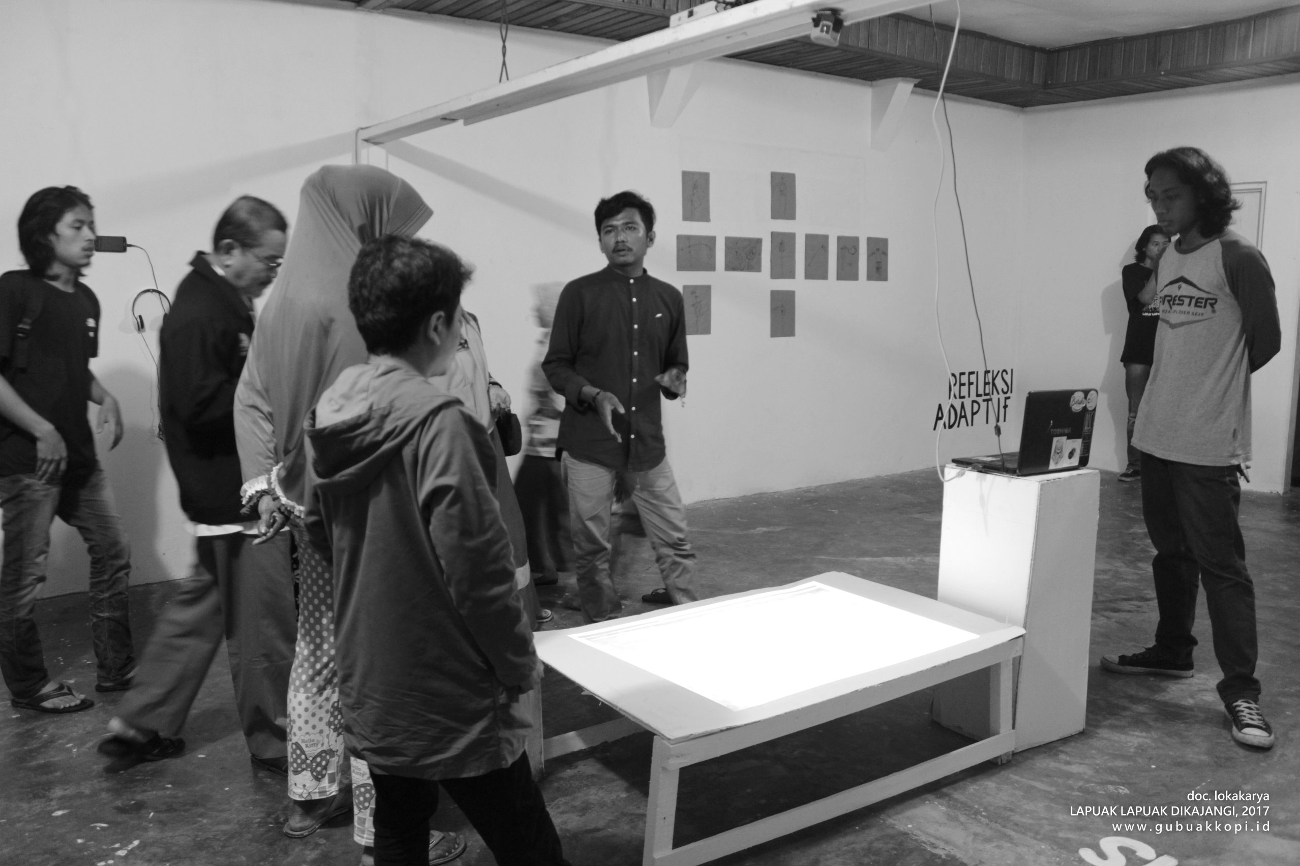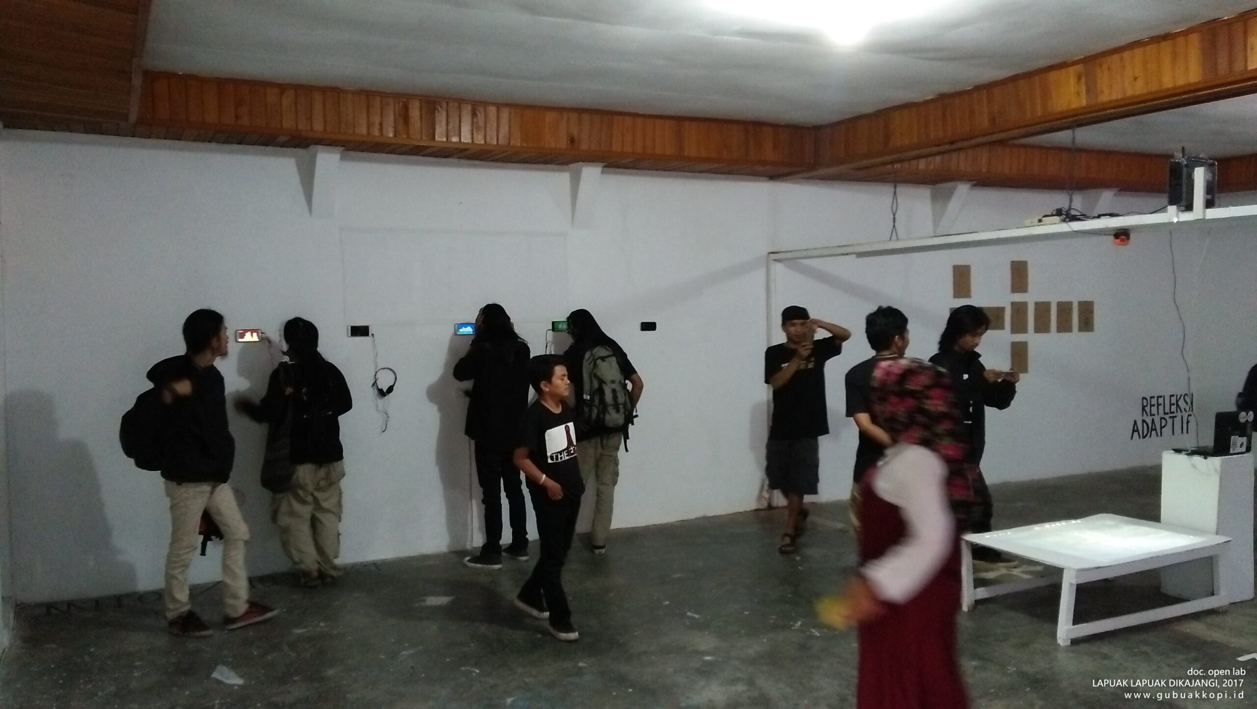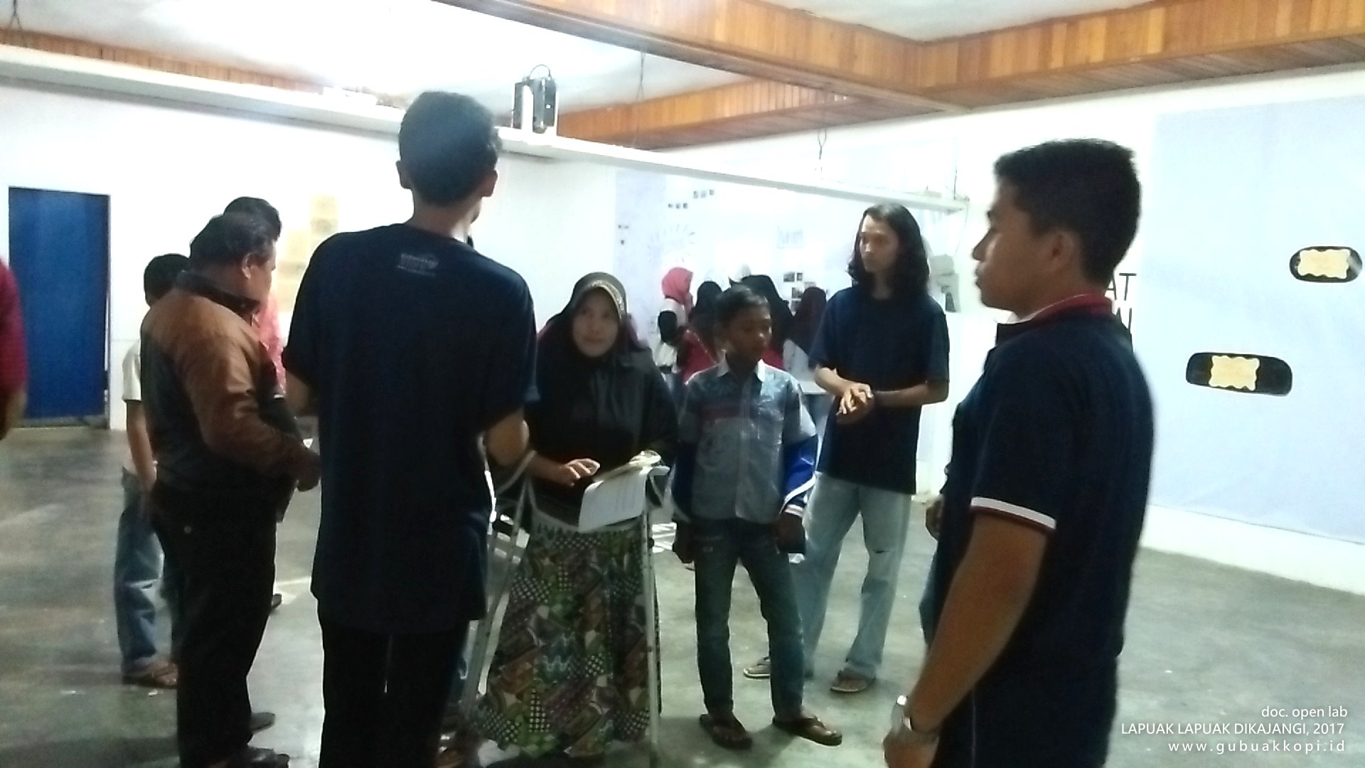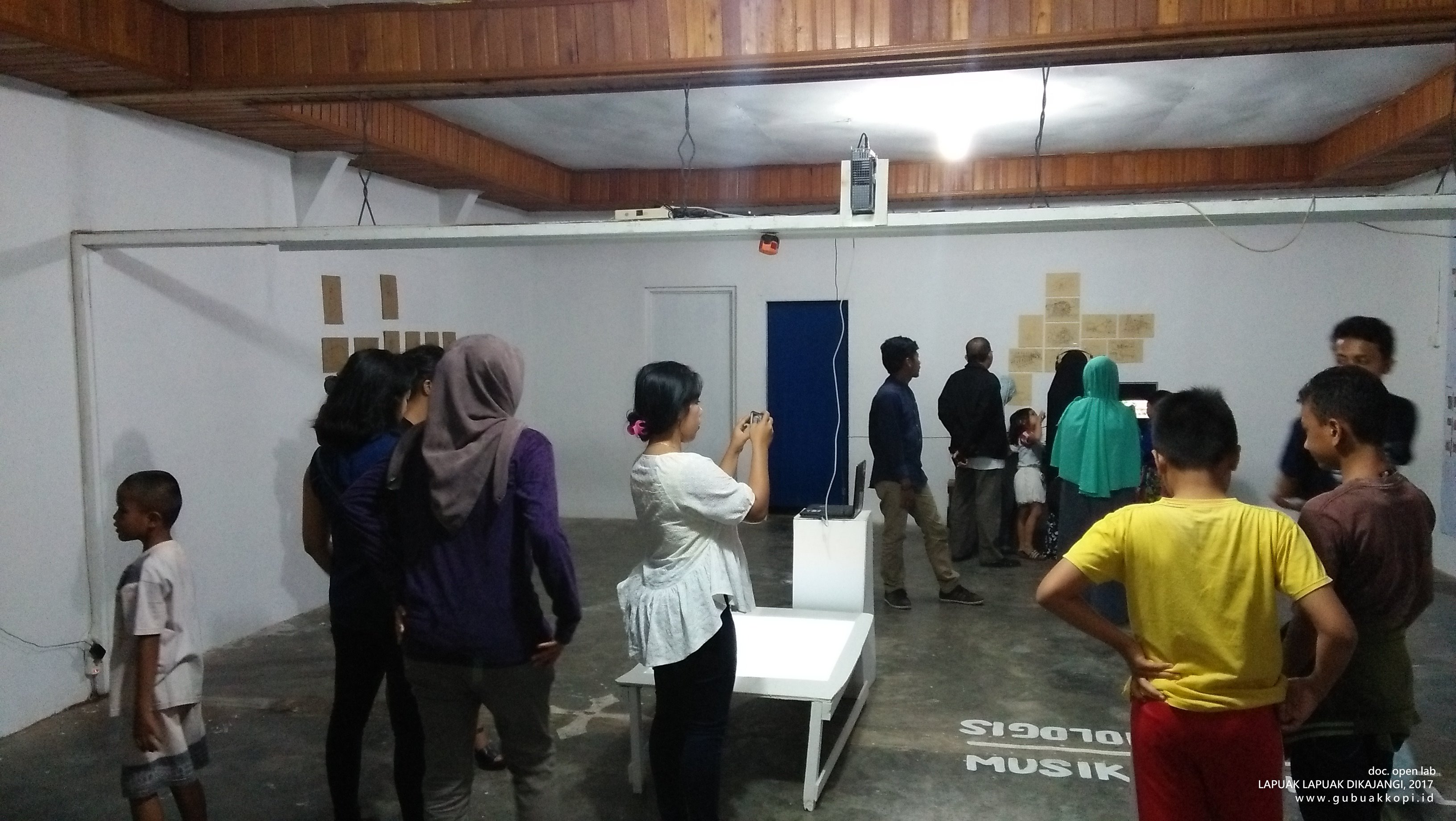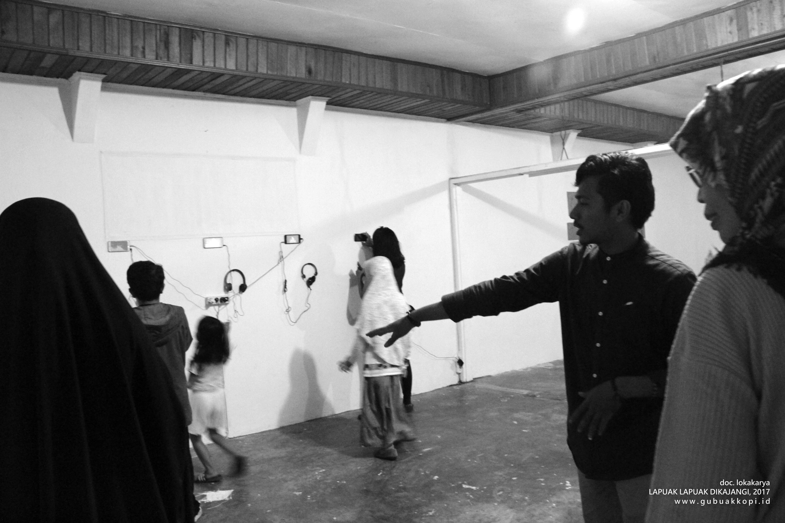 Suasana pengunjung pameran/open lab: LAPUAK LAPUAK DIKAJANGI, 6-8 Oktober 2017, di Galeri Gubuak Kopi