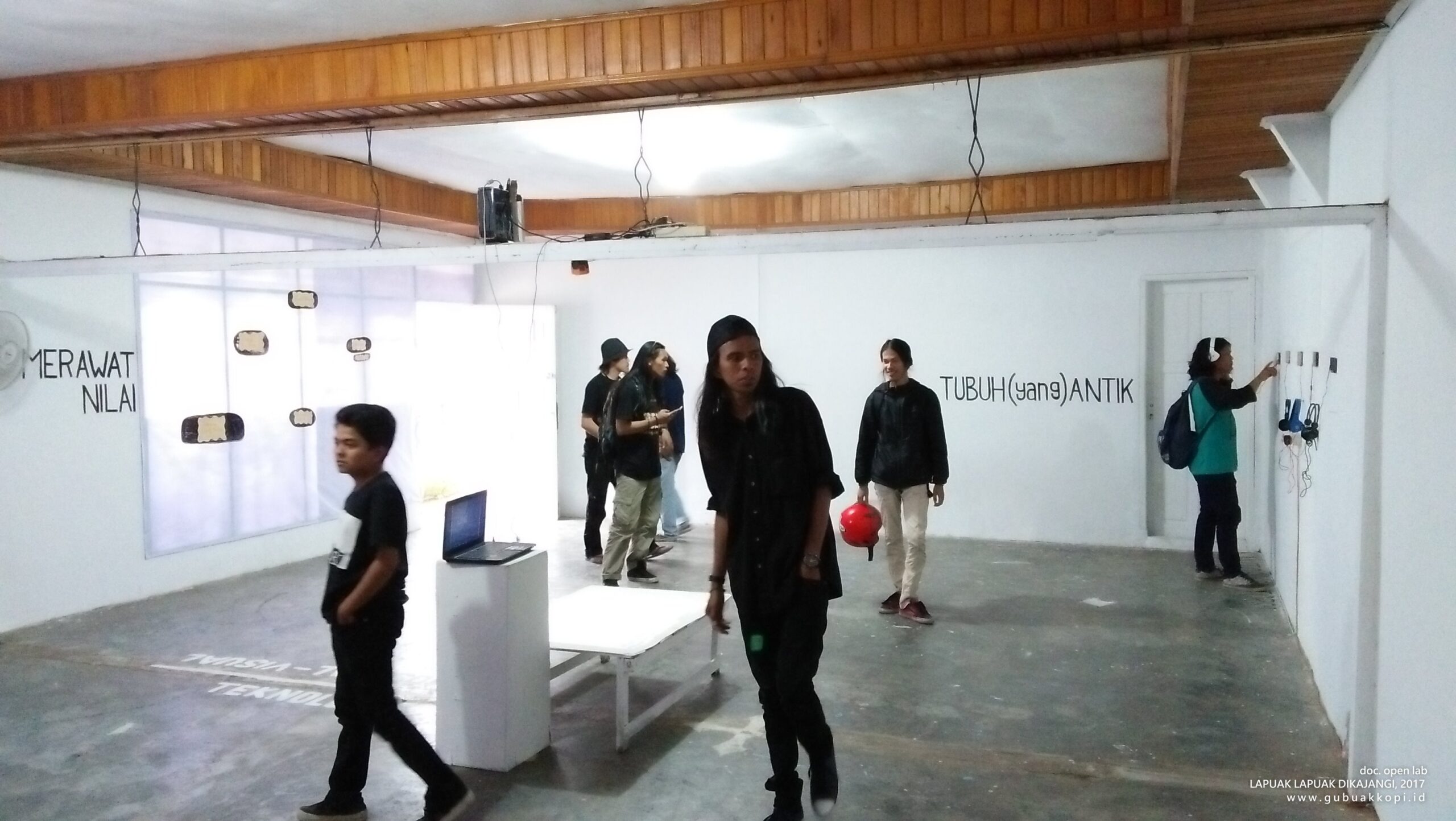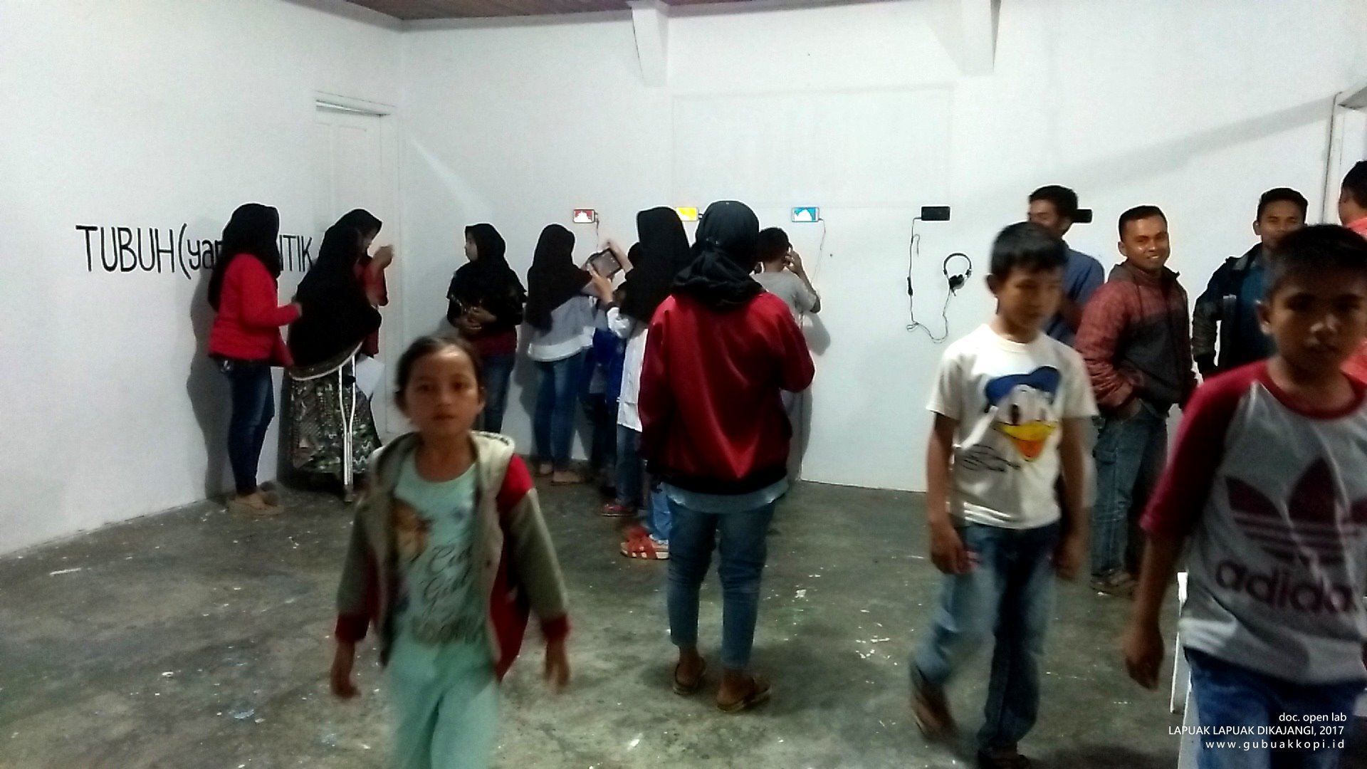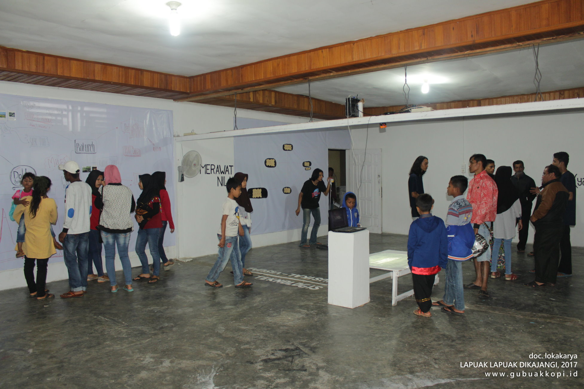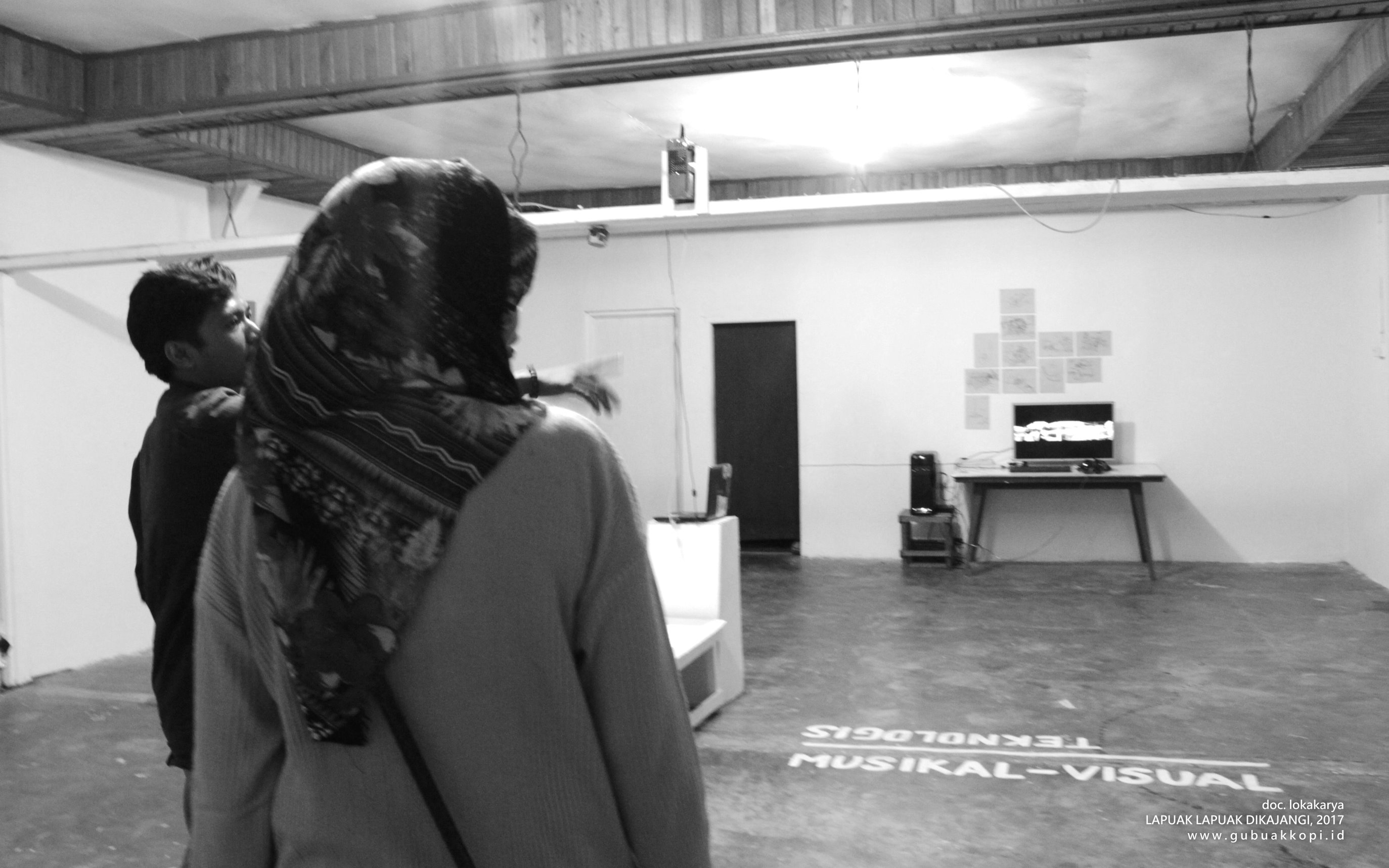 Suasana pengunjung pameran/open lab: LAPUAK LAPUAK DIKAJANGI, 6-8 Oktober 2017, di Galeri Gubuak Kopi