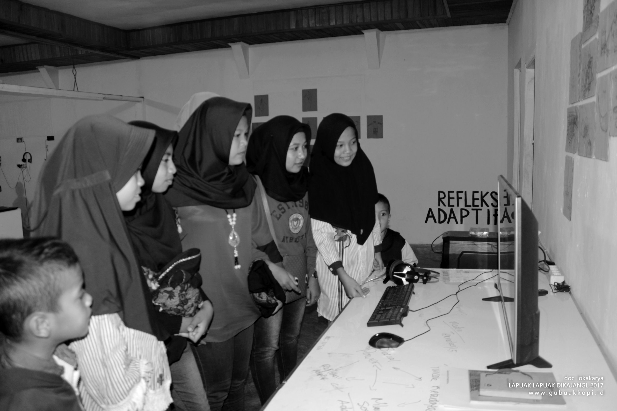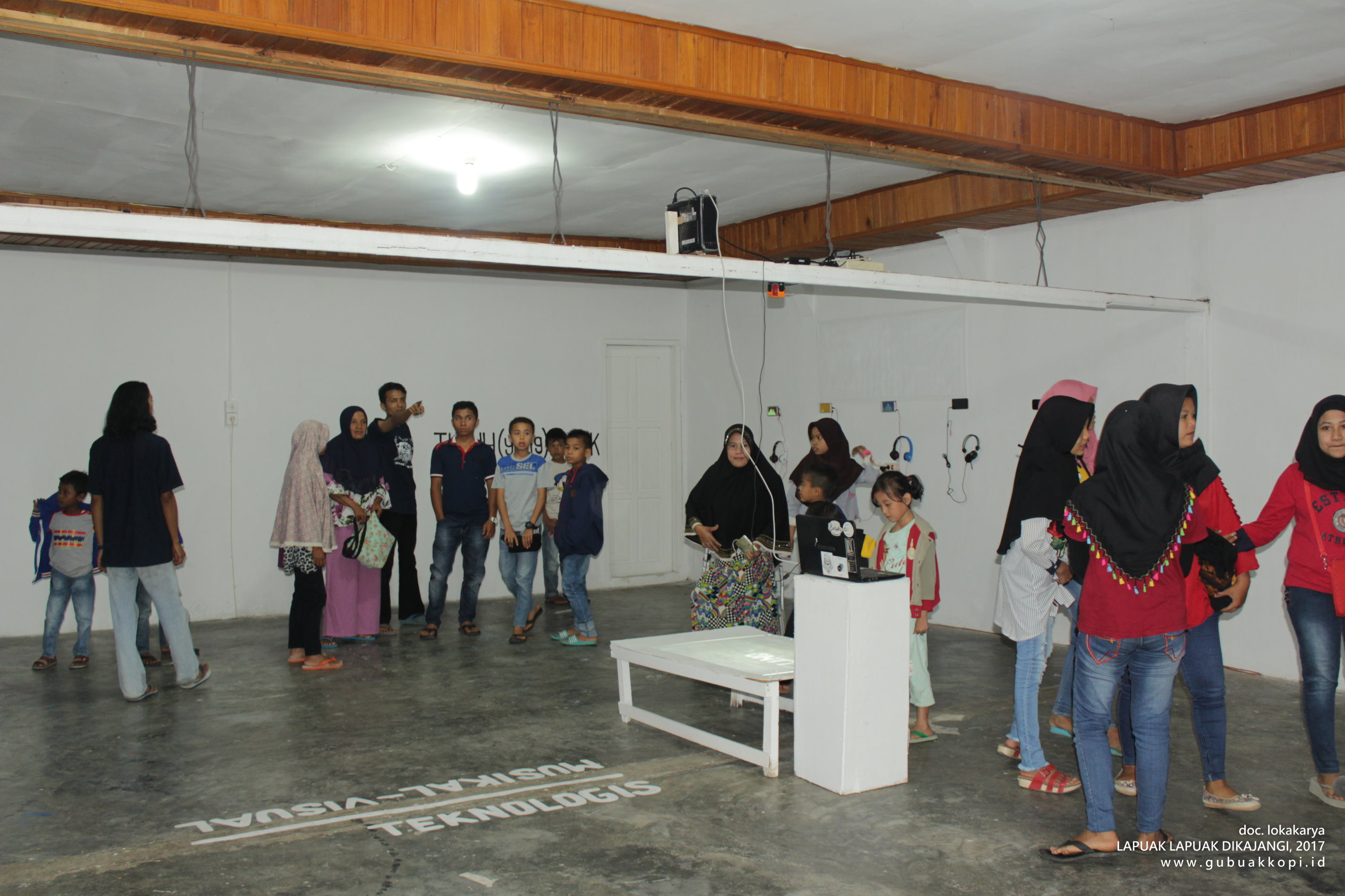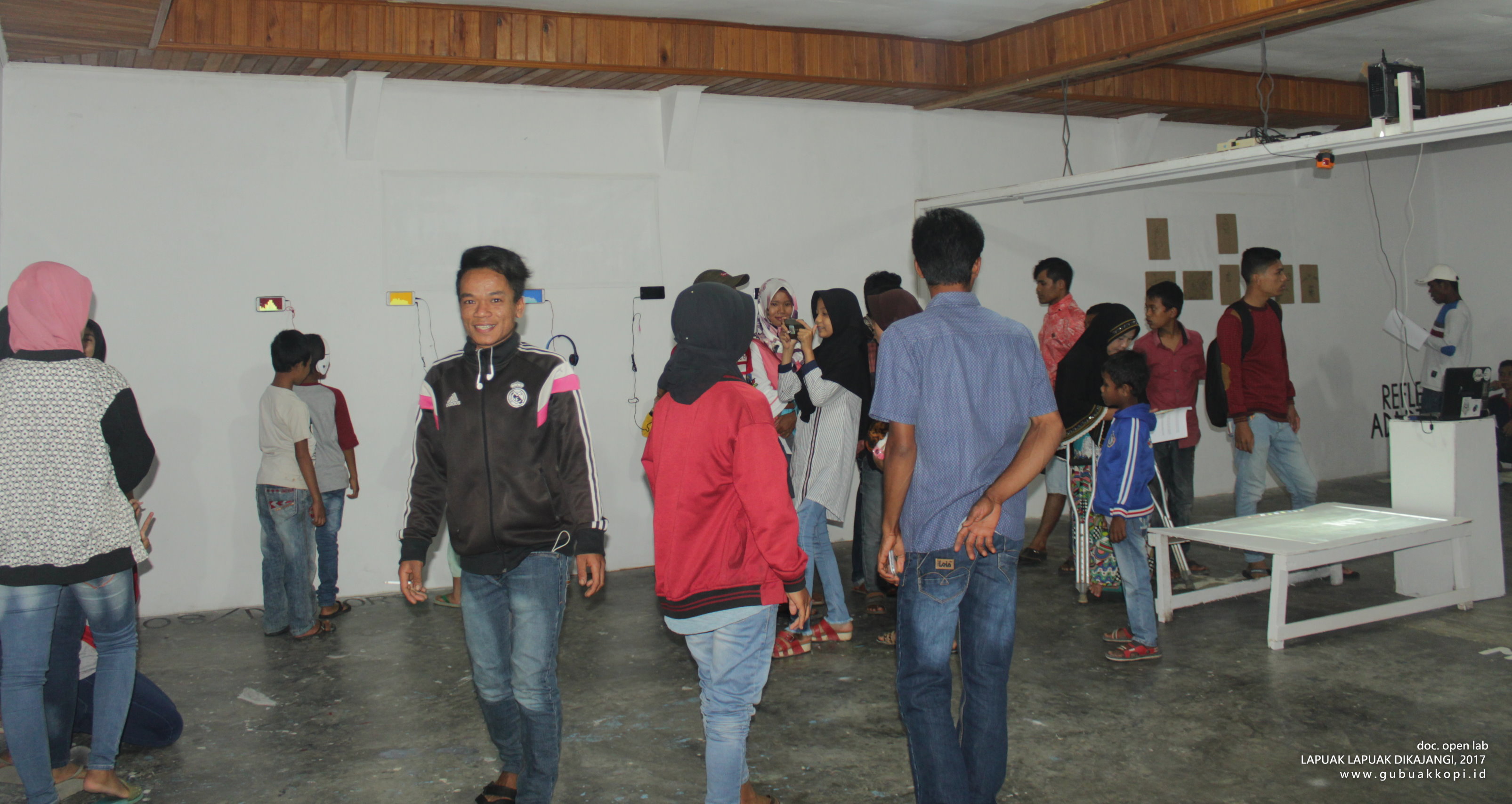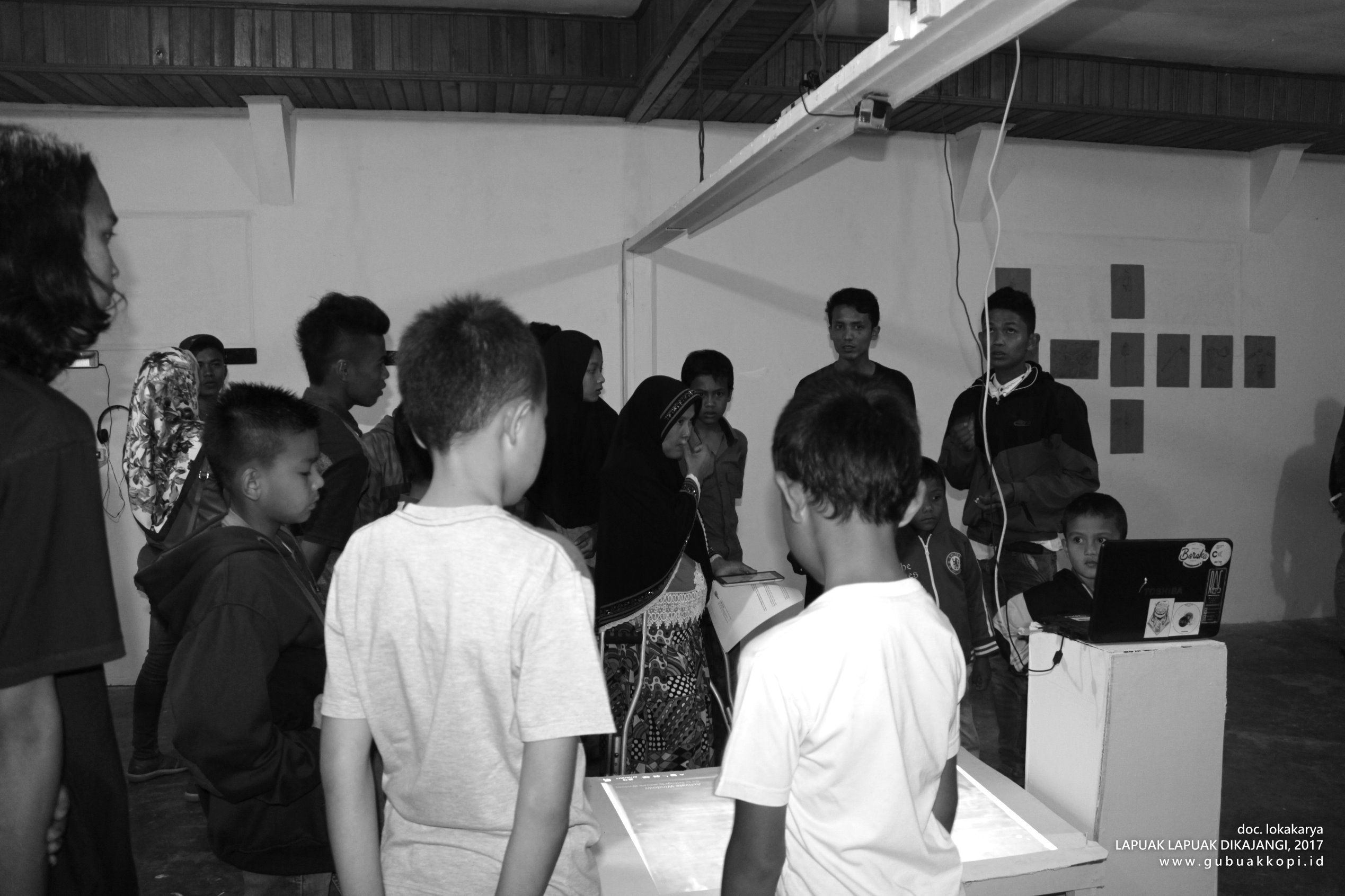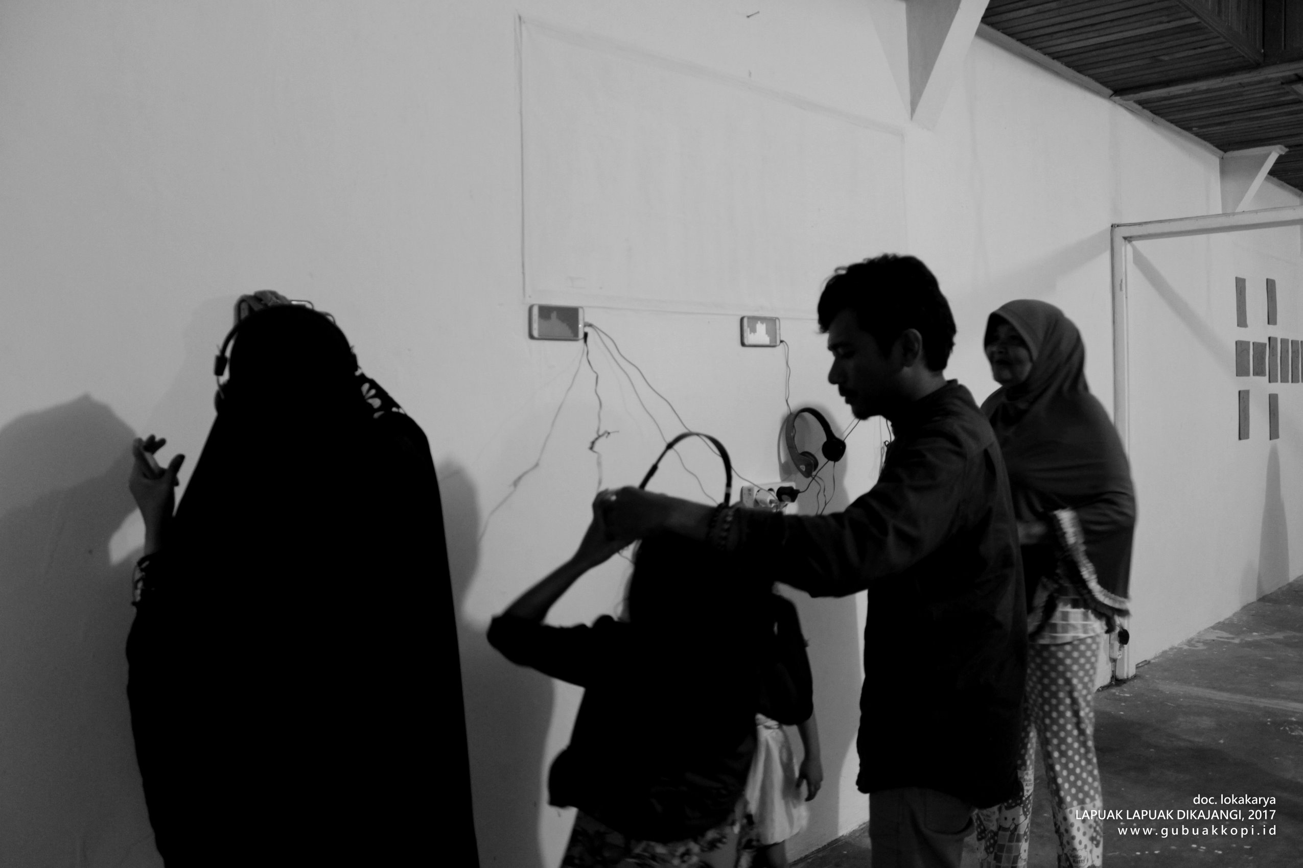 Suasana pengunjung pameran/open lab: LAPUAK LAPUAK DIKAJANGI, 6-8 Oktober 2017, di Galeri Gubuak Kopi