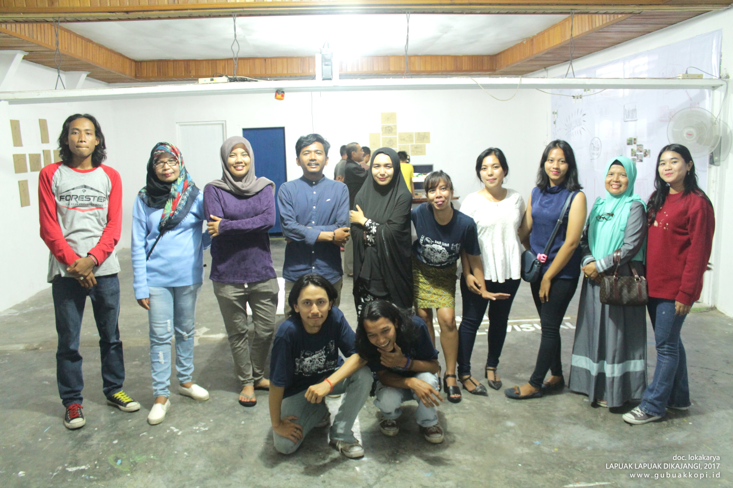 Suasana pembukaan pameran/open lab: LAPUAK LAPUAK DIKAJANGI, 6-8 Oktober 2017, di Galeri Gubuak Kopi