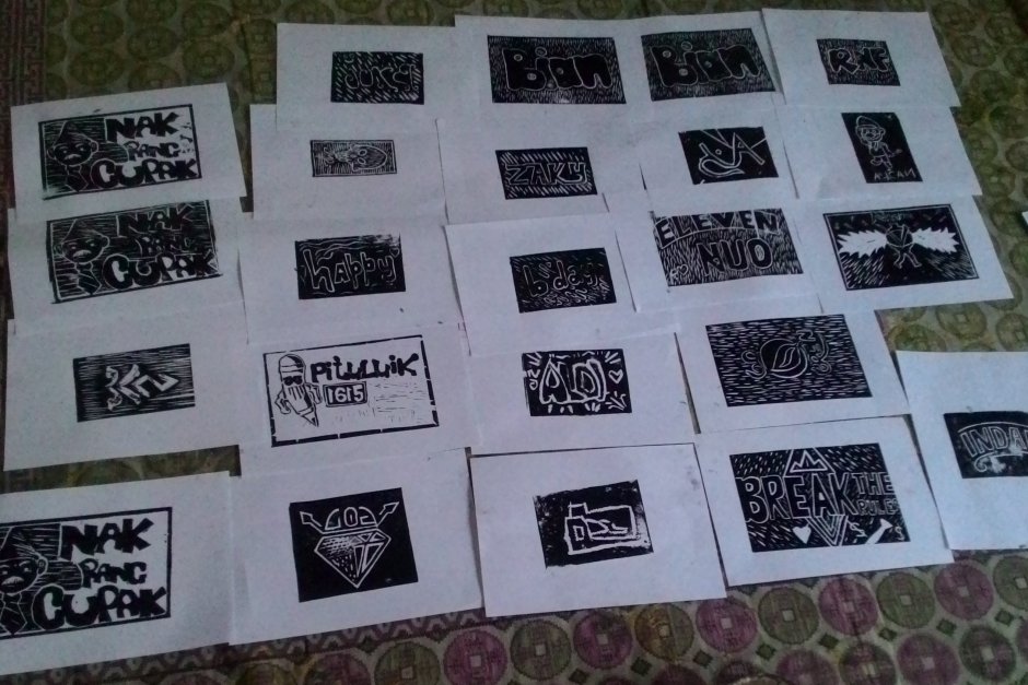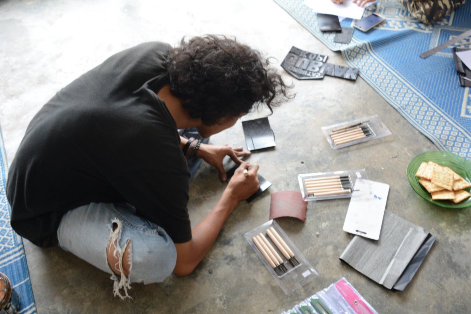 Di bawah arahan Volta dan kakak-kakak Komunitas Gubuak Kopi, para peserta diajak untuk menetukannya sket gambar yang mereka ingikan. Kemudian mentrasnfernya secara miror (cermin/terbalik) ke karet lino yang telah disediakan oleh panita. Gambar yang telah ditransfer, ‘dicukil’ dan kemudian diberi cat untuk ditempel (sablon) ke media mereka, seperti kertas, kaos, atau tas. Seperti yang telah diundangkan para peserta, dianjurkan membawa masing-masing satu buah kaos.