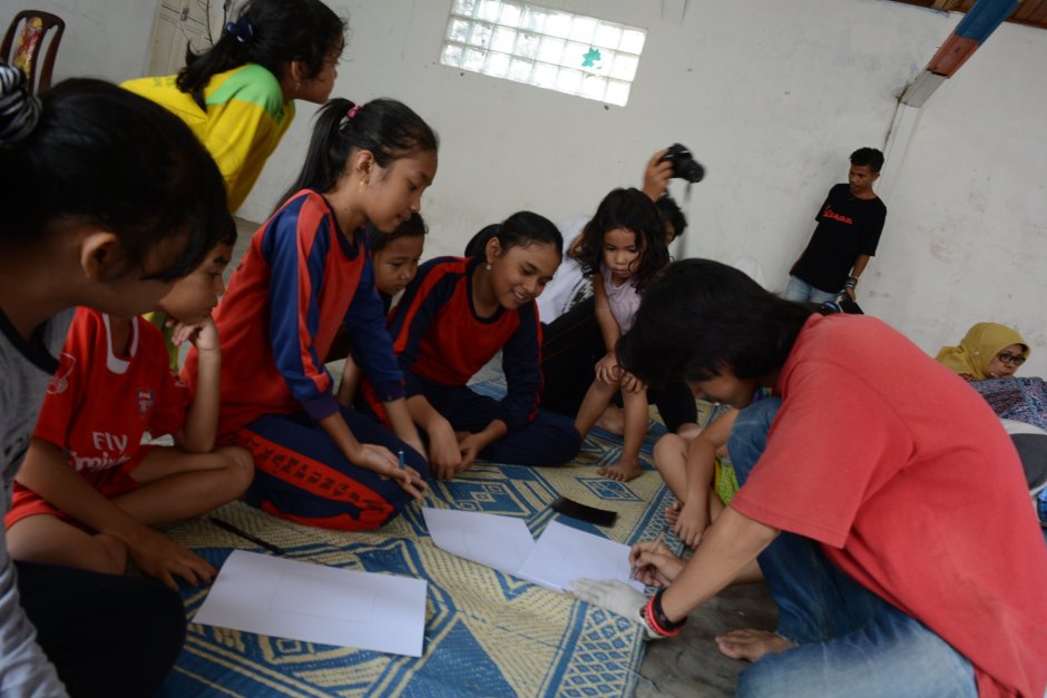 Volta dan Roro saat memberikan materi workshop seni grafis