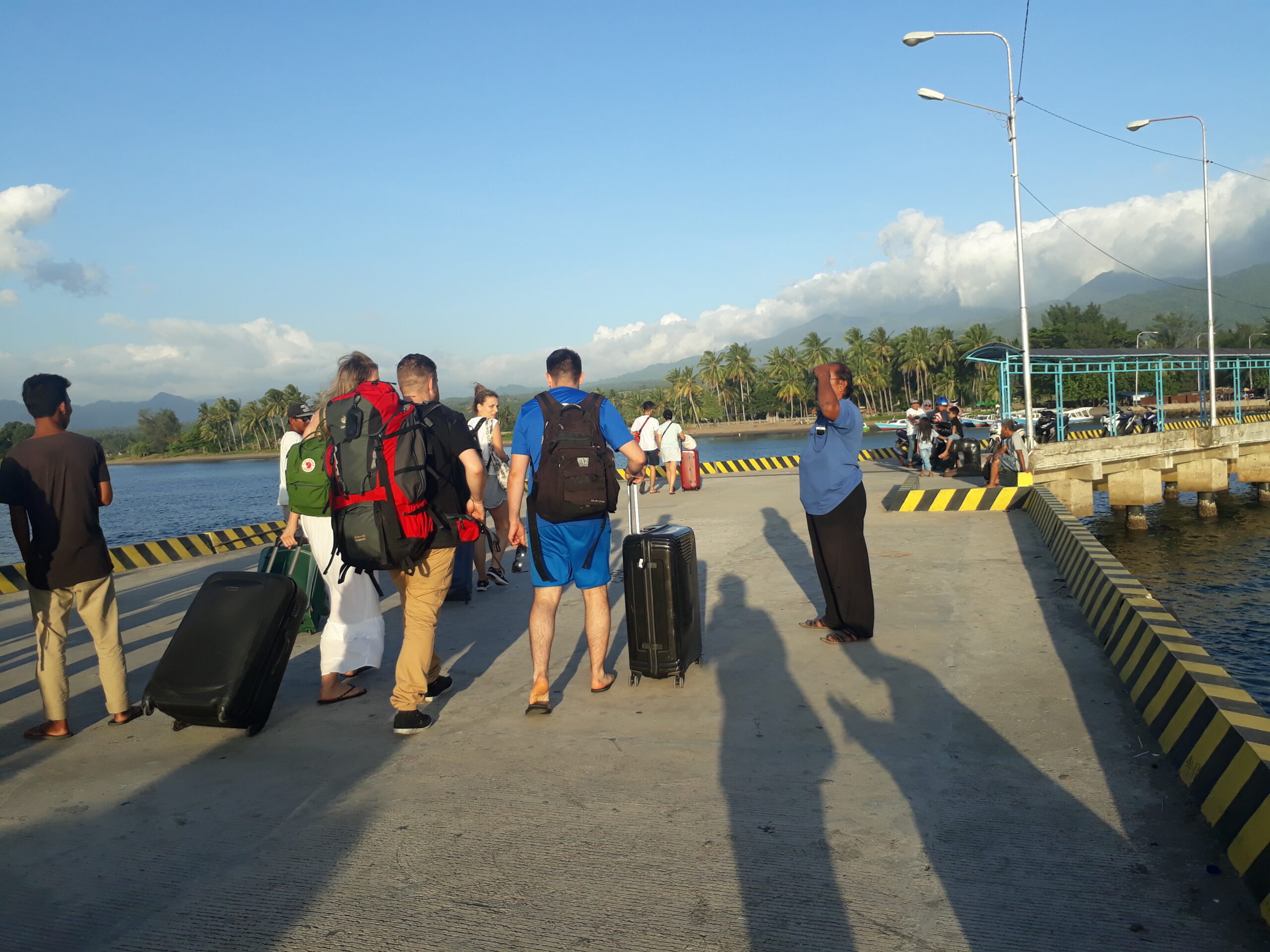 Tempat yang pertama kali saya kunjungi selain markas Pasirputih adalah Bangsal. Sekitar 5 menit dari markas, ke arah utara. Di sana terdapat sebuah pelabuhan kecil yang menjadi pintu keluar masuk wisatawan dari berbagai belahan dunia. Saya ditemani oleh Gozali dan Sibawahi, tepat pula waktu itu, kedatangan kami berbarengan dengan kedatangan sebuah fast boat yang mengantar ratusan wisatawan dari Bali yang hendak transit menuju tiga pulau kecil (gili) favorit, Gili Meno, Gili Air, dan Gili Tawangan. Di pesisir ada pula perahu kayu yang cukup memuat sampai 40 penumpang, dan jumlah mereka ada puluhan.
