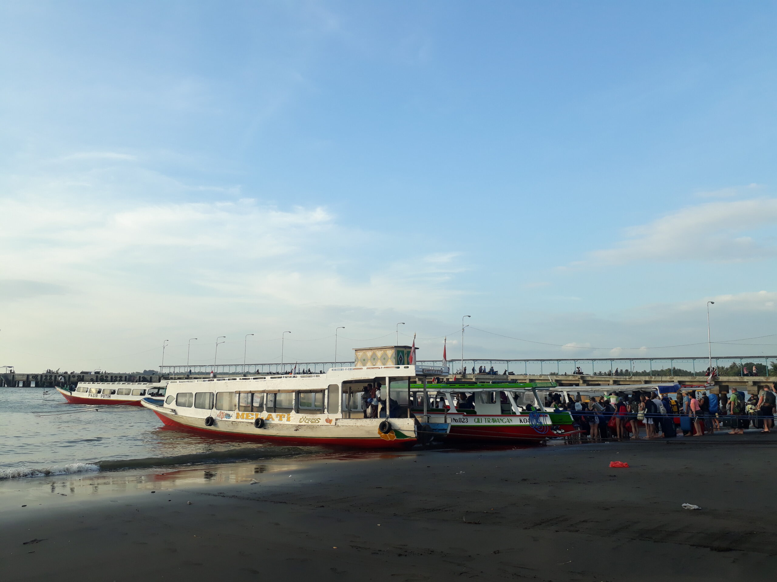 Saya melihat sekeliling. Di sebelah ibu itu berjejer perahu kayu untuk mengangkut wisatawan. Di belakang kami terdapat sebuah villa yang cukup besar yang pintunya tidak sampai seratus meter di bibir pantai. Mungkin karena air sedang naik.