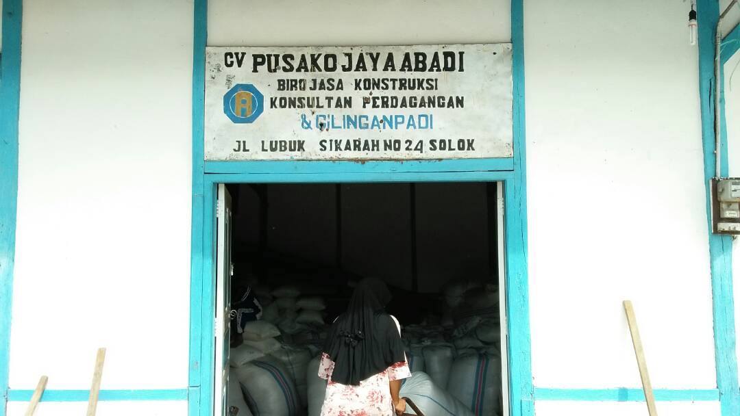 Sebelumnya, kita juga mendapat beberapa gambaran tentang perkembangan alat pertanian tradisional dari Buya Khairani. Dan kali ini saya bersama Riski memulai perjalanan dari Kantor Gubuak kopi dan berencana berkunjung ke Galeri Kincie, atau studio lukis Uda Dayat di Koto Baru, Solok. Kami pun memulai perjalanan dari Kantor Gubuak kopi. Dalam perjalanan, saya dan Riski menyempatkan diri untuk mampir dan melihat hal-hal yang bersangkutan dengan tema pertanian tadi. Saat melintasi jalan Lubuk Sikarah, Solok kami singgah melihat proses mambangkik[1] padi ke dalam karung menuju heler[2]. Kebetulan saat itu angin berembus kencang menunjukan cuaca akan hujan. Sebelum hujan turun, padi harus cepat diangkut ke dalam heler. Jika terlambat dan terkena hujan, padi yang sudah seharian dijemur akan sia-sia dan tidak siap digiling ke dalam mesin huller. Padi yang terkena air akan berat dan mesin tidak dapat menggiling dan memisahkan sakam padi.