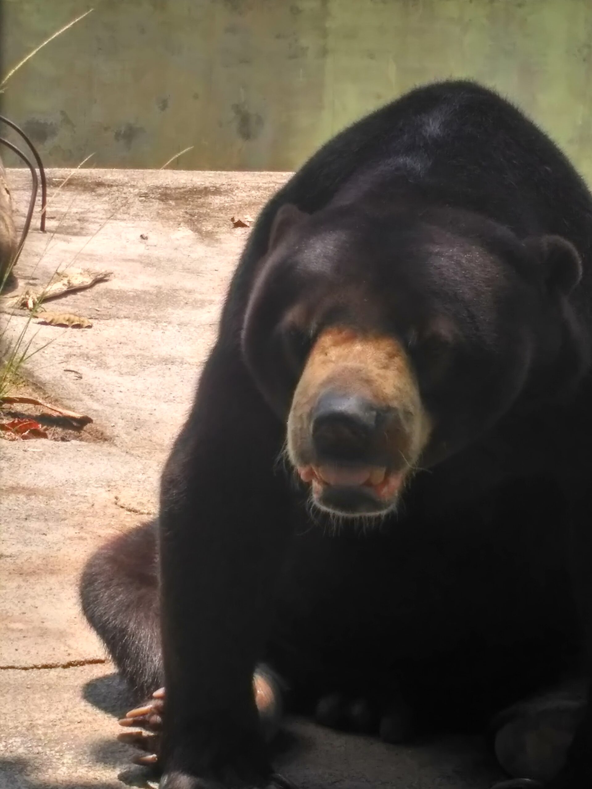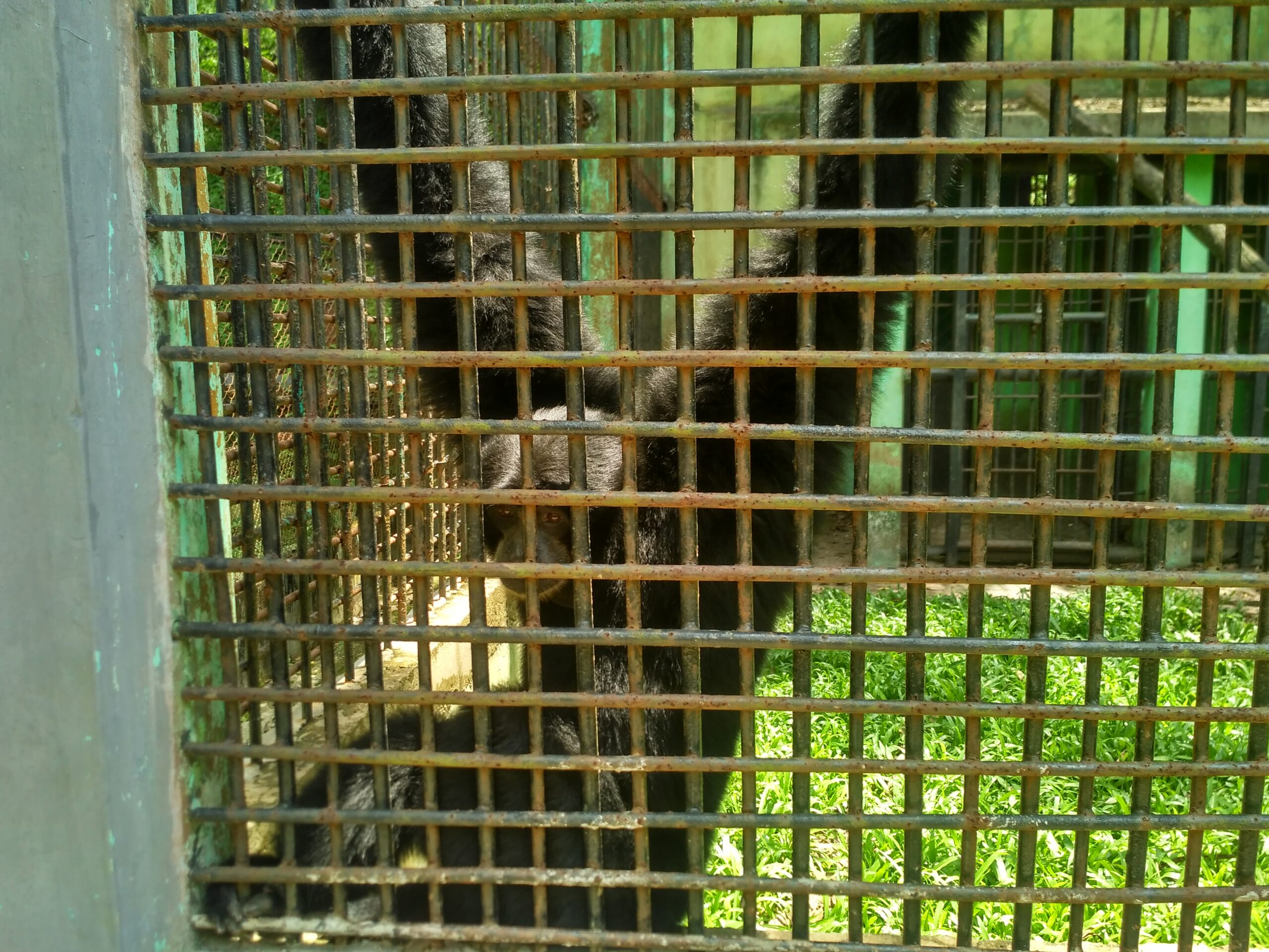Karena tidak mau berlama-lama, saya berjalan ke sebelah kadang orangutan itu. Saya mengira akan melihat satwa di dalamnya, namun ternyata kandang tersebut seperti kosong, saya mencoba memukul-mukul besi pembatas kandang dengan pengunjung dengan tangan saya untuk mencoba memancing keluar satwa yang ada di dalamnya namun ternyata memang tidak ada satwa di dalamnya dan saya memutuskan kembali untuk melihat kandang beruang madu yang sebelumnya sudah saya lihat. Saya mencoba memutari kandang itu karena waktu awal saya melihat beruang madu itu dia membelakangi saya dan berada berseberangan dari posisi saya berdiri. Setelah sampai di seberang dari posisi awal saya melihat kandang beruang madu ini, saya langsung bertatapan dengan beruang madu itu, saya sedikit merasa was-was, karena jarak posisi beruang itu duduk dibangunan persegi dengan tembok pembatas kandang tempat saya berdiri sangat dekat, saya merasa bisa saja beruang madu ini melompat dan ke tepi batasan kandang dan menjangkau saya dengan kuku nya yang tajam.