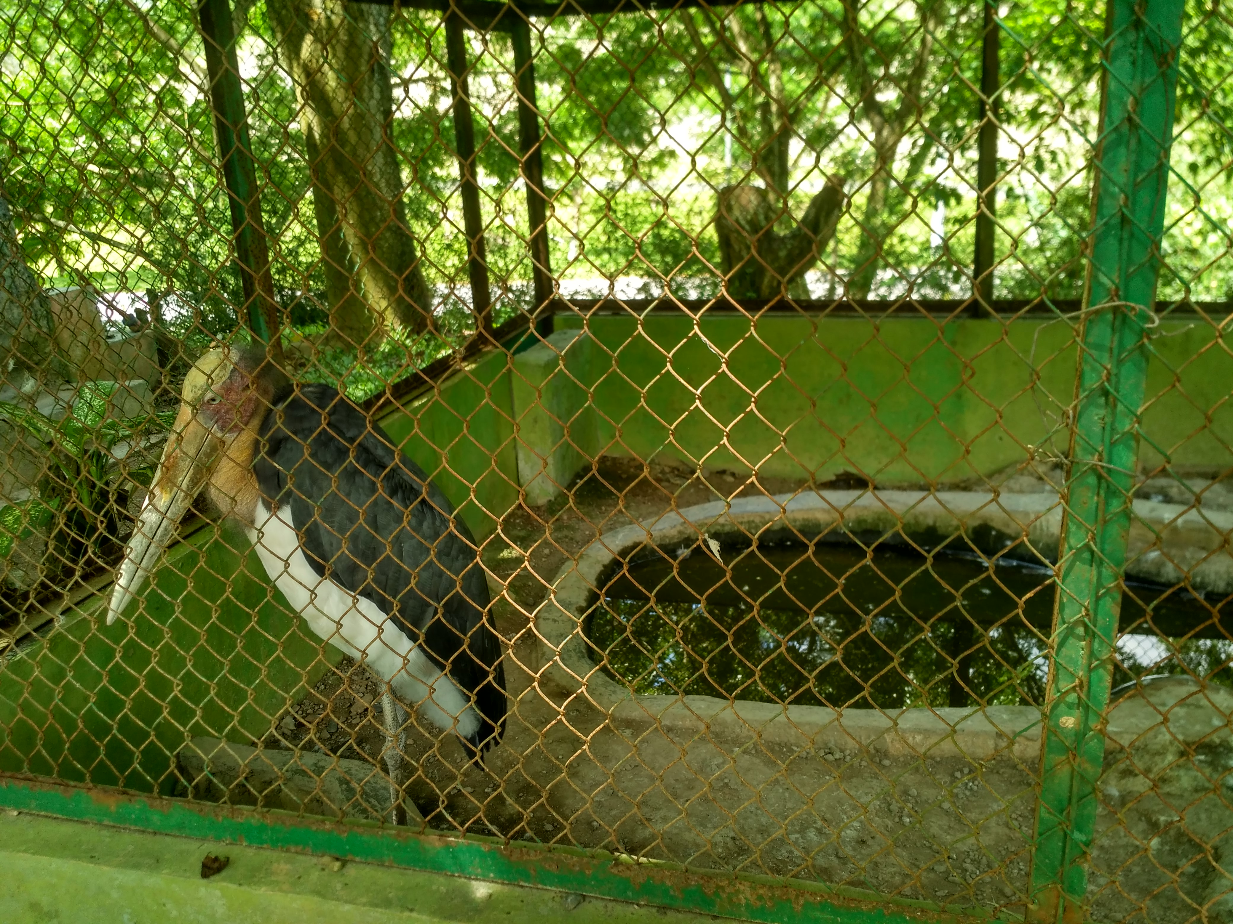 Akhirnya saya sampai diujung yang satunya dari taman satwa ini sebelum memasuki wahana permainan, saya melihat seekor bangau yang tampak sudah sangat tua dengan bulu kepala yang botak dikurung di dalam kandang yang sempit bagi ukuran burung bangau tersebut. Lengkap sudah semua mengenai keadaan taman satwa ini.